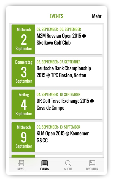 EventsVeranstaltungen von Golf-Clubs weltweit auf einen Blick |