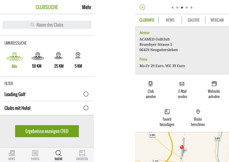 Webcam und Facebook AnbindungUpdates aller Golf-Clubs und Blicke auf den Platz |