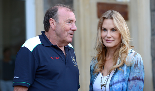 EAGLES-Präsident Frank Fleschenberg mit Daryl Hannah, welche abends einen Charity-Scheck für den verein ‚Kinderstiftung‘ erhielt. Foto: SchneiderPress, Wolfgang Breiteneicher