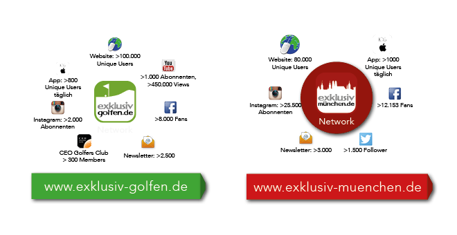 Mit Exklusiv Golfen haben wir 2009 ein Golf-Service-Angebot realisiert, welches aktuelle und hilfreiche Golf-Informationen im Web, Mobile und als App bündelt. Über 100.000 Unique User besuchen die Angebote von exklusiv-golfen.de – damit liegt exklusiv-golfen.de in den Top 3 der Online Golfmedia Angebote in Deutschland.