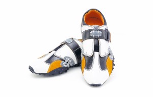 Duca del Cosma gilt als Senkrechtstarter in der Golf-Gemeinde. Ihr Konzept: federleichte Schuhe aus High-Tech-Material mit stylischem Design. Ganz klar, daß gerade die neue Generation Golf die Münchner Treter liebt. So gibt es auch den wasserdichten Airplay für die ganze Familie. Im Bild: only for Kids.