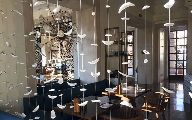 In der Nebensaison haben wir Mallorca bereits des Öfteren erlebt und wissen, dass viele Restaurants, Hotels und Supermärkte gerade im mallorquinischen Hinterland geschlossen sind. Damit dürfte das Hotel auch für Nicht-Hotelgäste ein Gastro-Tipp sein. In der hauseigenen Tapas-Bar mit einem Bartresen um den Steinofen herum kann man bereits ab 18 Uhr dinieren. Der spanische Sternekoch David Garcia, welcher zuvor acht Jahre lang für die kulinarische Leitung des Guggenheim-Museums Bilbao verantwortlich war, bringt vom Fleisch über Fisch bis zum vegetarischen Gericht Abwechslung auf die Karte. Unter Tapas versteht man eigentlich kleine Appetithäppchen, aber alle Einzelgerichte fallen sehr üppig aus.