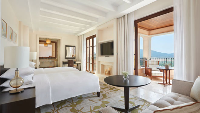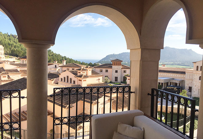 Die 142 großzügigen Zimmer und Suiten mit begehbarem Kleiderschrank bieten genügend Platz, dass Golfer auch ihre Bags durchaus mit ins Zimmer nehmen können. Wie in einem traditionellen mallorquinischen Bergdorf sind die Gästezimmer in verschiedenen Häusern verteilt. Mit hoteleigenen Golfcarts wird man gerne zu einem der exklusiven Häuser geshuttelt, wo sich das Hotelzimmer befindet.