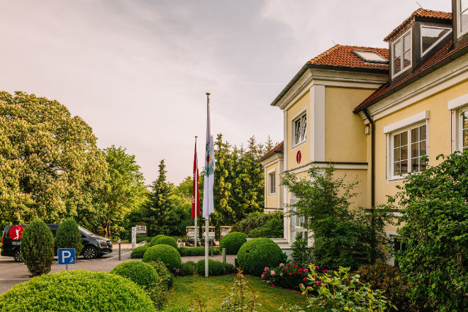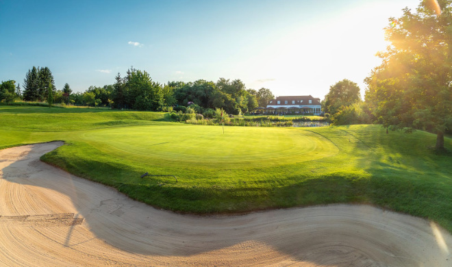 Acht Minuten von der Würzburger Residenz (UNESCO Weltkulturerbe) präsentiert sich auf einem Hochplateau ein grosszügige Golfanlage mit 18 Bahnen, eingebettet in eine sanfte Hügellandschaft. Das Clubhaus bietet freien Blick auf das 18te Grün. Fotocredit: Michael Pogoda Greenfee-News