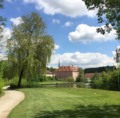 1981 eröffnete der 18-Loch-Golfplatz Schloss Reichmannsdorf. Der Golfplatz wurde noch vom früheren Eigentümer - die Adelsfamilie von Schrottenberg - geplant und gebaut und deshalb beginnt auch gleich der Golfplatz vis-a-vis vom Schloss. Nach französischen Schlossgarten-Vorbild gibt es einen großen Wasserkanal, welchen sich die Platzarchitekten zunutze machten und die ersten neun Löcher links vom Kanal und die zweiten neun Löcher rechts vom Kanal anlegten. Alter Baumbestand und ständige Blicke aufs Schloss machen hier eine Runde Golf besonders. Der Par72-Platz ist mit einer Länge von 6.093 m (gelb) nicht zu kurz und nicht zu lang, aber es gibt einige Höhenmeter zurück zu legen, denn für einige Löcher muss man ein paar kleine Berge erklimmen. 2016 wurde der Platz komplett von der Firma Sommerfeld wieder in shape gebracht. Greenfee-News