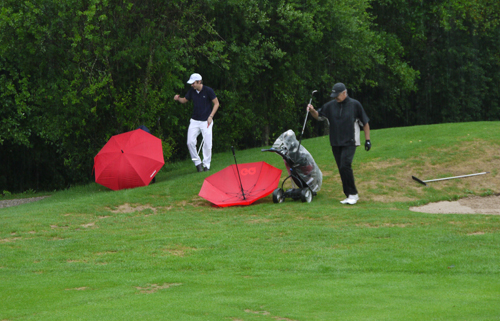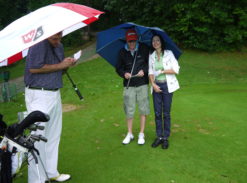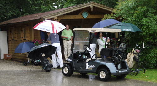 Gegen 10 Uhr sah der Golftag am Starnberger See noch rosig aus: Jürgen Mayer – Gründer & Gesellschafter von exklusiv-golfen.de – und Cristina Szbaizero von der World Trade Center Organisation Monte Carlo eröffneten das besondere Golfevent, welches um 11.30 per Kanonenstart begann. Die ersten beiden Stunden spielte der Wettergott mit, bis einsetzender Regen dem exklusiven Teilnehmerfeld alles abverlangte.