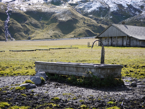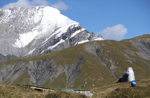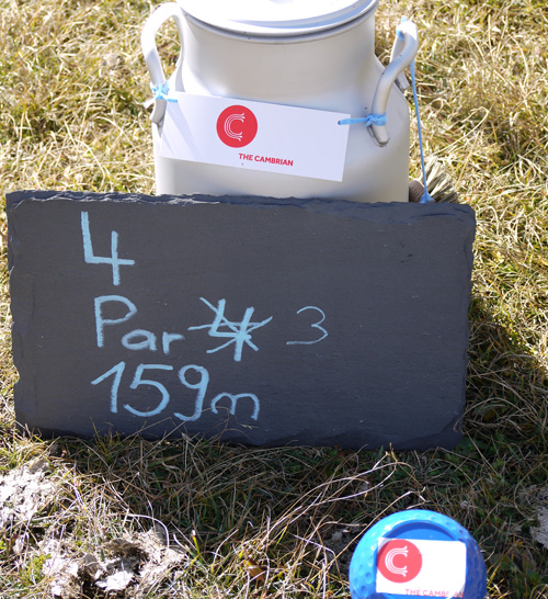 Die ersten Zeichnungen für 18 Löcher auf dem Hochplateau entstanden und die Adelbodener waren Feuer und Flamme für das ambitionierte Golfprojekt, war der nächste Golfplatz über 45 Autominuten entfernt. Mit einer Gesamtdistanz von 3.450 Metern ist der Par-62-Platz zwar nicht lang, aber mit der Höhenluft fühlt es sich wie mindestens 7.000 Meter an. Deshalb braucht man auch alle Schläger im Bag inklusive den Driver. Wer zum Golfplatz will, muß die Bergbahn nehmen und als Clubhaus dient eine urige Almhütte, wo man seine Greenfee von 70 Franken (ca. 51 €) zahlt. Im Preis inklusive ist die Benutzung der Driving-Range inklusive ein Körbchen Bälle, ein Tafelwasser und man wird ausgestattet mit speziellen Tees und einem Putting-Behelfsloch, welches man auf die Kunstmatte auflegt, um das Grünloch zu simulieren. ‚Für uns hat die Natur oberste Priorität und deshalb achten wir darauf, dass niemand hier Plastik-Tees verwendet‘, sagt Urs Buchli, welcher die Leitung des Alpengolfplatzes inne hat. An jedem Abschlag ist eine Kanne mit frischen Bergwasser platziert und mit einer kleinen Bürste kann man seinen Golfball vom Schmutz befreien.