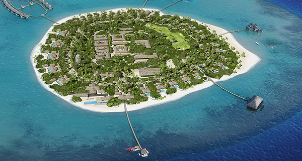 Auf der Luftaufnahme der kleinen privaten Velaa Insel (nördlich von der Malediven-Hauptstadt Male) kann man den kleinsten Golfplatz der Welt längst erkennen. Hier soll die Velaa Golf Academy von Olazabal mit Troon-Golf-Management ab 2014 eröffnen. Das czechische Investoren-Ehepaar Jiri und Radka Smejc’s setzen die Luxus-Messlatte hier ganz oben an: ‚Velaa Private Island mit einem außergewöhnlichen Golfschule soll zu einem der begehrtesten Reiseziele für Golfer werden!‘ Alles über das Golf-Insel-Projekt auf den Malediven.
