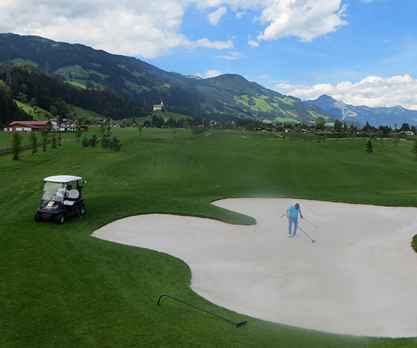 Man merkt an vielen Details, dass Christine Egger und Ehemann Reinhard Binder (ein Sohn der Binderholz-Dynastie aus Fügen) der Golfvirus gepackt hat. Seit ca. 20 Jahren spielt Reinhard Binder Golf und einmal pro Jahr teet er mit einer reinen Männerrunde in Irland, Schottland & Co. auf. Er hat golferisch schon viel gesehen und ‚in der GolfLodge stecken natürlich meine Wünsche, wie ich gerne als Golfer wohnen würde‘, erzählt der Single-Handicapper.