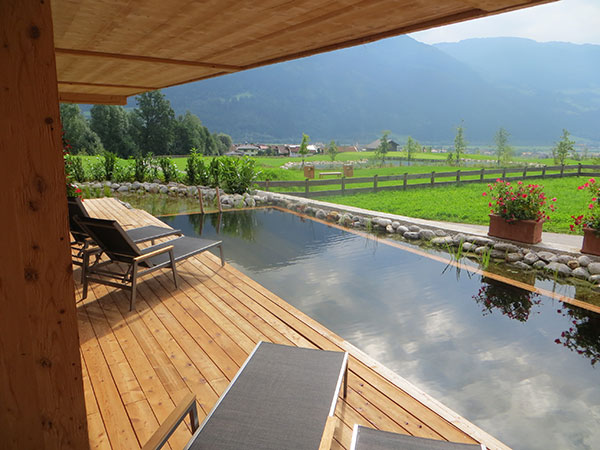 Unser Tipp: Die ‚Estlake Suite‚ im Erdgeschoss. Die Temperatur des Naturteichs wird nicht jeden zusagen, aber von der Terrasse hat man den besten Ausblick zum Abschlag Nr. 4 des neuen Golfplatzes Zillertal. Bis Juni 2014 war die Familie Egger-Binder ordentliches Mitglied vom Golfclub Pertisau, welcher 25 km entfernt liegt. Seit Golfplatz-Eröffnung im Zillertal im Juni 2014 sind sie Mitglieder hier und es kann passieren, dass man ihnen per Zufall auf dem Golfplatz begegnet. Mehr zu den GolfLodge-Suiten hier!