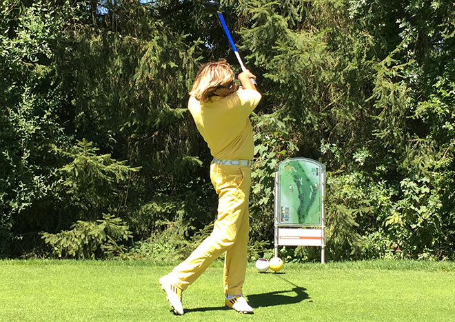 Von tag-täglich bis auf ein Paar Wochen im Jahr, wo er gar nicht spielt, weil er entweder auf Tournee ist oder im Winter der Platz geschlossen ist. Seine liebsten Runden absolviert er gerne abends und alleine oder mit Tochter Laura ab 18.00 in seinem Heimatclub im GC Eichenheim, wenn er mit Cart auf einem so gut wie leeren Platz seine 18 Löcher in unter zwei Stunden spielen kann.