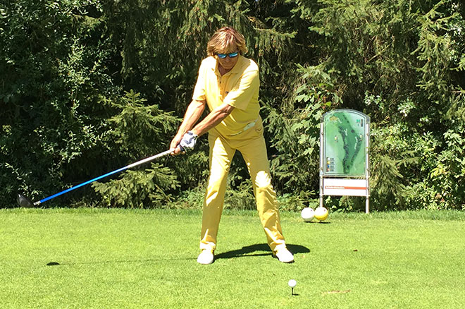 Entfernungsangaben interessieren Hansi Hinterseer kaum. Während andere Golfer fünfmal vor jedem Schlag auf Ihre Golferuhr schauen, vermisst man bei Hansi Hinterseer jegliche Hilfsmittel, stattdessen verlässt er sich voll und ganz auf sein Gefühl. Viel wichtiger ist ihm dabei, gerade in den Sommermonaten eine Zwiebel im Golf-Bag zu haben. Hilft dieses alte Hausmittelrezept schnell und wirksam gegen Stiche jeglicher Art bzw. hält die Wespen und Bremsen fern.