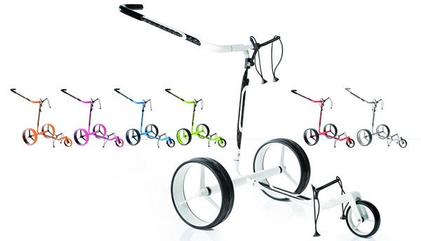 Farben-Trendsetter war JuCad ja schon immer: Das Elektromodell ‚JuCad Carbon Travel‘ mit dem Mini-Packmaß von nur 65 x 35 x 15 cm gibt es jetzt z.B. auch in pink und royalblau, oder schwarz-orange, schwarz-grün und schwarz-gelb! Geblieben sind jedoch auch in diesen Farbmodellen die sichtbaren Carbon-Segmente im Vollcarbonrahmen! Und ganz Farbenfrohe können sogar aus einer Palette verschiedener Räder- und Felgenfarben wählen… wie in der Mode: immer passend zum Outfit oder zum Golfbag …