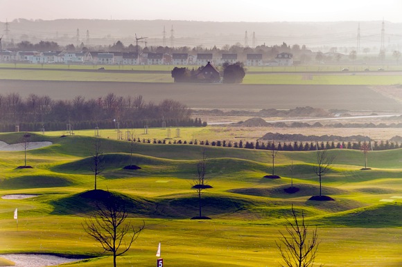 Der Weg dorthin war nicht ganz leicht, denn nicht jedes beteiligte politische Lager war darüber begeistert. Eigentlich sollte nur eine freie Landschaftsfläche sinnvoll verplant werden, die zwischen einem Lärmschutzwall der Autobahn und dem Ortsteil Widdersdorf im Nordwesten von Köln brach lag. Es wurden dann nur 91 Hektar Fläche genehmigt, die für eine komplette neue Golfanlage bereit gestellt werden konnten. Die Liste der gleich mit beschlossenen Auflagen und Pflichten war jedoch ziemlich lang: Die 27-Loch Golfanlage mit weiteren Einrichtungen wie Kurzplätzen und Trainingszentrum musste den Status ‚Öffentlich‘ tragen, weil das in der Kölner Region bisher kaum umgesetzt wurde.
