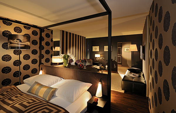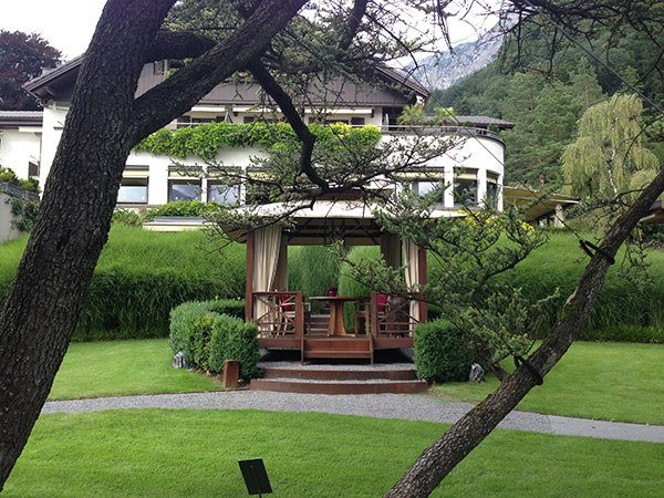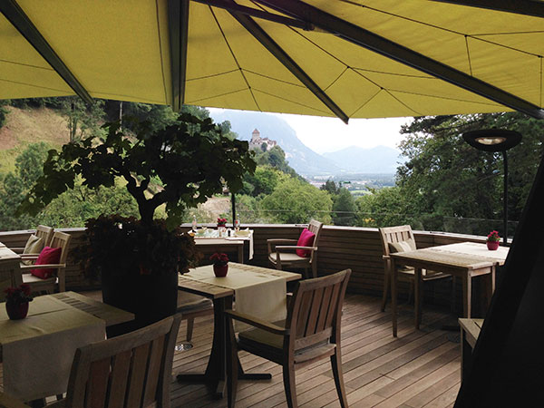 2011 hat Hubertus Real den renommierten Schweizer Landschaftsarchitekten Enzo Enea für den 5.000 qm großen Traum-Garten engagiert und dieser hat nicht nur den Blick zum Schloss in Szene gesetzt, dieser hat aus einen wunderschönen Garten ein atemberaubendes Gartenabenteuer gemacht. Statuen zwischen hohen China-Schilf, ein Gazebo für Lunch- oder Massage-Tête-a-Têtes und ein Terrassen-Restaurant in Form eines Nestes, wo sich Stammgäste Wochen im voraus ihre Lieblingsplätze reservieren. Real nennt es stolz das Adler-Nest, hat er lange nach einen passenden Namen gesucht, ist diese Terrasse für ca. 40 Personen die Verlängerung seines Gourmet-Restaurants Marée. Er nennt sein neues Refugium ‚Kraftplatz‘. Ob Kaffee oder Dinner – hier geniesst man den Blick zum Schloss. Es ist Zufall, dass der Adler auch das Tier im Liechtensteiner Wappen ist. Der Wahlspruch von Relais & Châteaux sind ‚die fünf C‘: Caractère, Courtoisie, Calme, Charme und Cuisine (Charakter, Freundlichkeit, Ruhe, Charme und Küche). Im Park-Hotel Sonnenhof kommt der traumhafte Ausblick noch dazu! Einen herrlichen Blick auf Vaduz und das Rheintal hat man von den 29 Zimmer und Suiten aus, welche unkonventionell und individuell eingerichtet sind. ’29 Perlen‘ heißt es auf der Hotel-Webseite, auf welche wir auch verweisen wollen, denn je nach Vorlieben kann man zwischen Armani-Luxus über Landhausstil bis zum einfachen Doppelzimmer wählen. Kein Zimmer gleicht dem anderen.