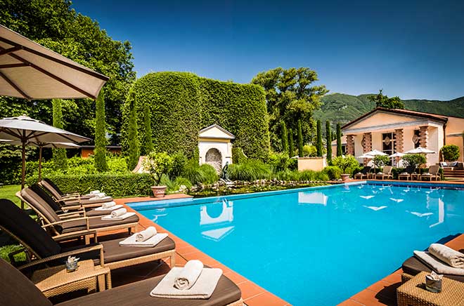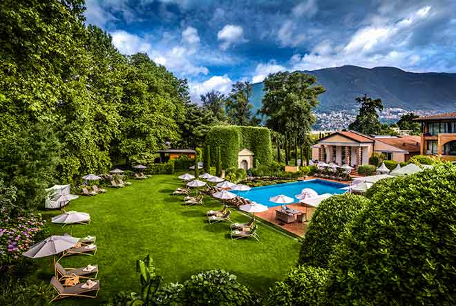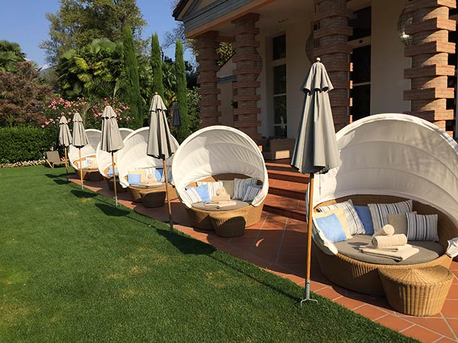 Gerade das einzigartige Mikroklima im Tessin erlaubt es Golfern bereits ab April bei warmen und milden Temperaturen zu golfen. Das mediterran angehauchte und trendige Hotel befindet sich inmitten einer Parkanlage keine 300 Meter vom Lago Maggiore. Der Garten mit einem traumhaften Pool und einem Natursee, einer Bar mit exotischen Gesundheitsdrinks und den vielen Day-Beds ist eine wunderbare Erholungsoase. Das kleine und feine Hotel hat 72 Zimmer, Suiten und Appartements, welche ein modernes, schickes Lebensgefühl vermitteln. Kulinarisches Highlight ist das mit zwei Michelin-Sternen ausgezeichnete Restaurant „Ecco“, in dem Rolf Fliegauf, einer der angesehensten Köche der Schweiz, beheimatet ist. Auch das weniger formelle Hotel-Restaurant „Aphrodite“ (wo auch das Frühstück kredenzt wird) hat uns sehr sehr gut gefallen, bietet es einen tollen Blick in den opulenten, mediterranen Garten. Nicht überraschend also, dass das DFB Team schon zum zweiten Mal, das Giardino im Tessin als Trainings- und Vorbereitungsquartier auserkoren hat.