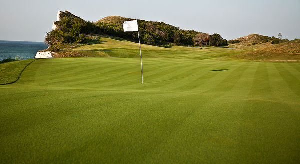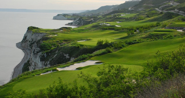Die sorgfältig platzierten Abschläge, Grüns und Fairways erstrecken sich über 4,5 Km entlang der Küste und stellen für den Golfer bei jedem Loch eine echte Herausforderung dar. Es gilt schmale Fairways und ondulierte Grüns zu treffen und der Wind vom Meer trägt seinen Charme dazu bei. Auf über 164 Hektar und 4,5 km Länge führt der Golfplatz entlang unberührter Küstenlandschaft – absolut undenkbar, dass so etwas in Europa oder Amerika in der heutigen Zeit gebaut werden dürfte. Von jedem Abschlag und jedem Fairway genießt man uneingeschränkten Blick auf das Schwarze Meer und spielt die Fairways keine 500 Meter vom kristallklaren Wasser entfernt. Das tiefblaue und klare Meer ist der kontrastreiche Gegenpool zu den satten Grüns in die karge Landschaft hineingearbeiteten Fairways – ein Anblick wie er uns bislang unmöglich schien. Auf dem Meer sind keine Boote und Frachter sondern mit etwas Glück sieht man Robben und Delphine.