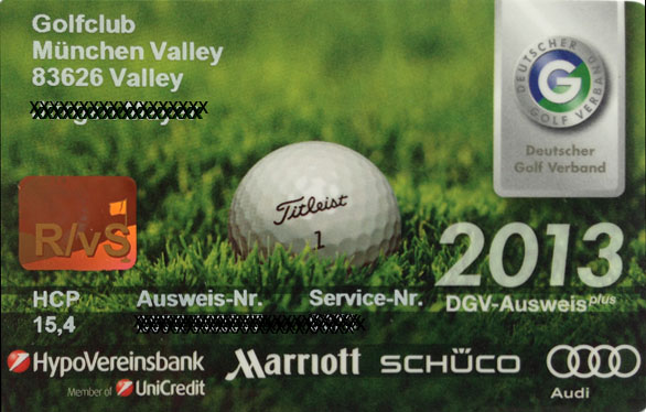 Dieses Jahr könnte das Hologramm auf dem DGV-Ausweis zu mancher bösen Überraschung auf den Golfanlagen führen, denn es teilt die deutsche Golf-Nation in eine 4-Klassen-Gesellschaft, nämlich in Standard-DGV-Ausweis, Silber-Hologramm mit ‚R‘, Silber-Hologramm mit ‚vS‘ und Gold-Hologramm ‚R/vS‘. (siehe auch Leserkommentar weiter unten „5 Klassen Gesellschaft lt. Leserkommentar“)